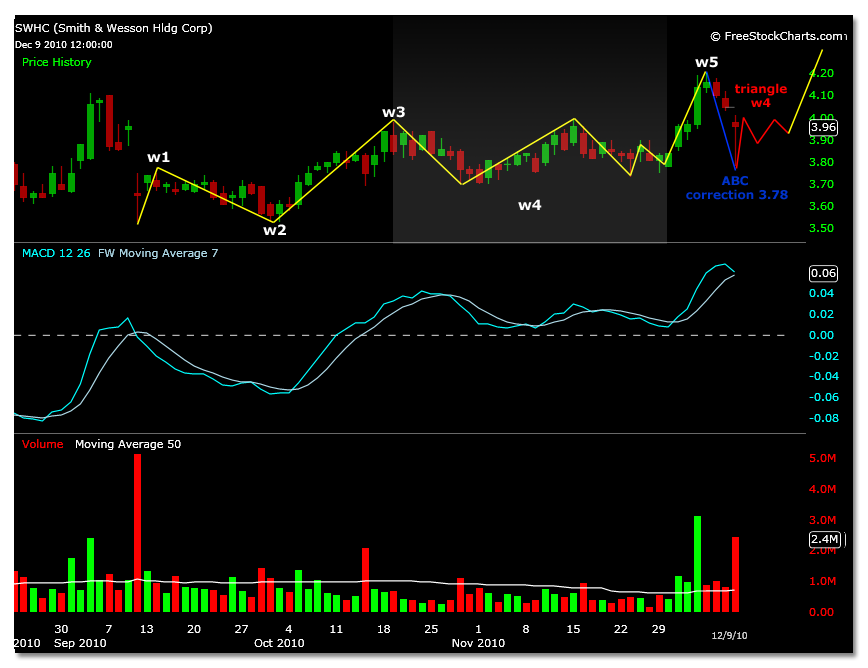 The wave C target is 3.89, this would be a good price to enter a trade with a stop below the 3.78 level for short term traders. If SWHC successfully holds this low and trades within a range of 4.00, it should continue to trade to upside targets.